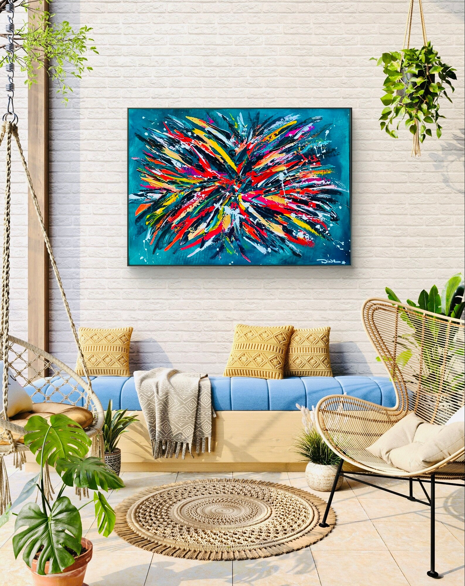 Les bords du tableau sont colorés en noir, ce qui permet de garder une belle esthétique et ne vous impose pas d’encadrer le tableau.